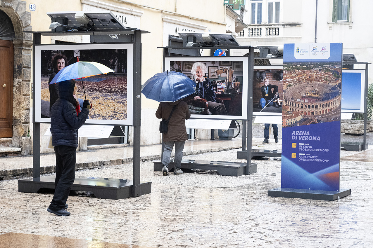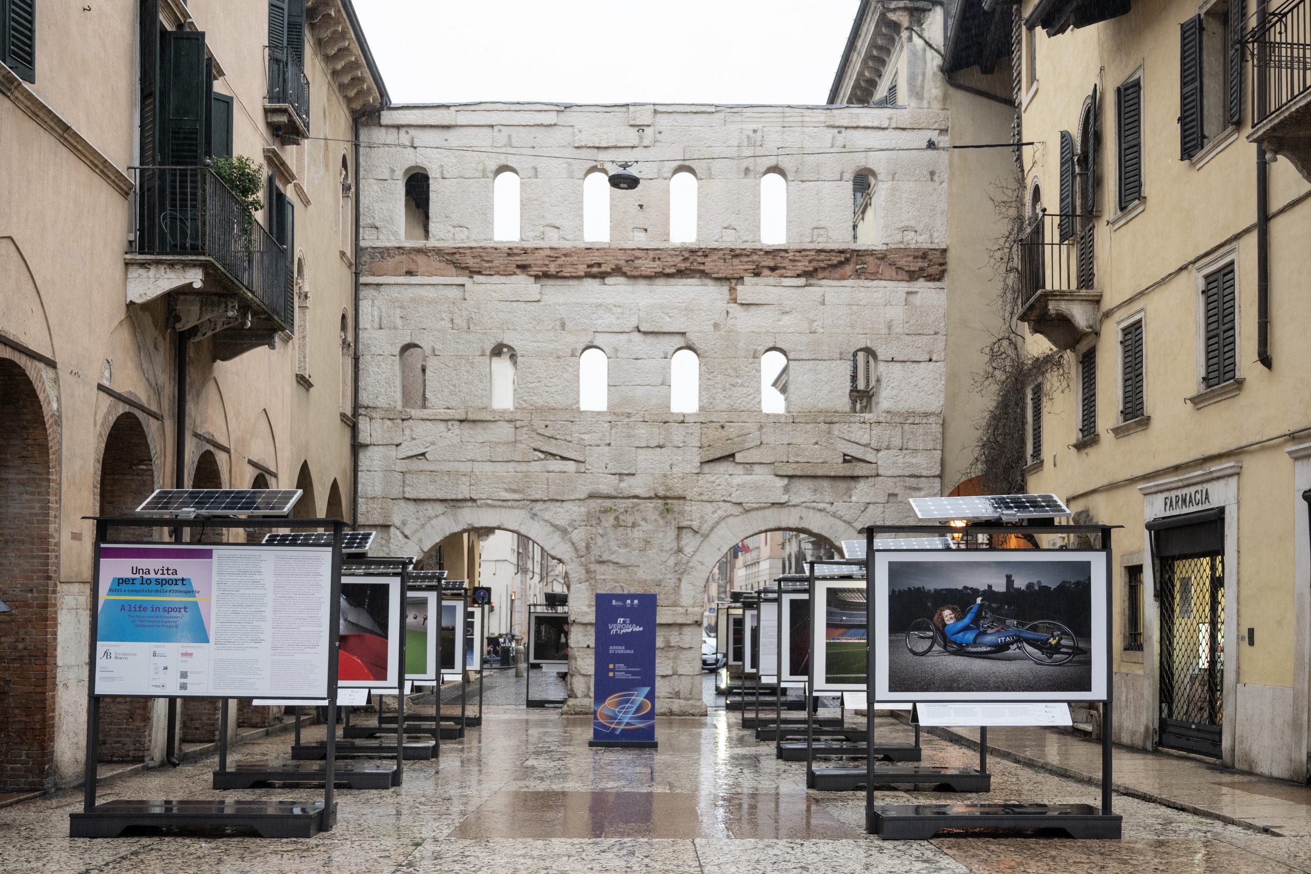 L’esposizione, la prima a cielo aperto per la città di Verona, è allestita a Porta Borsari – storico ingresso cittadino –  in una cornice simbolica che richiama apertura e accessibilità culturale, liberamente visitabile non solo da parte di cittadini e turisti, ma anche da parte di atleti, delegazioni e pubblico internazionale presenti in città in occasione delle cerimonie olimpiche e paralimpiche.