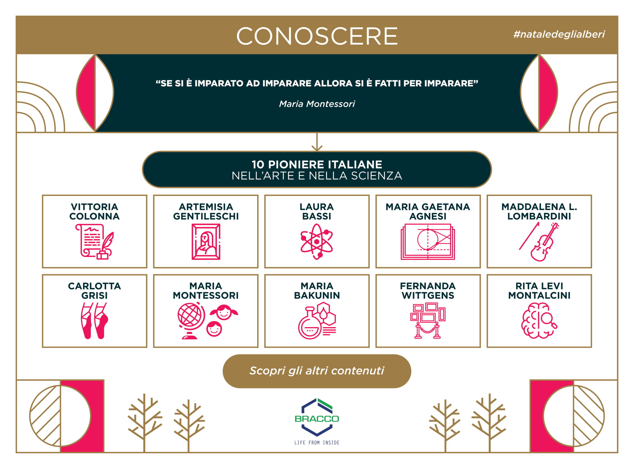 Il Gruppo Bracco ha contribuito, oltre che con il dono del concept alla città di Milano, con l’installazione “L’albero della conoscenza”, collocato nella piazza Vigili del Fuoco nel quartiere Lambrate, dove l’azienda è storicamente presente. L’installazione si è configurata come una foresta del sapere che ha avvicinato il pubblico alla scienza, grazie ad approfondimenti audio di scienziate e scienziati e totem didattici.